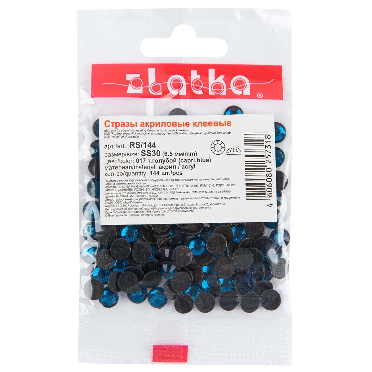 Страз клеевой " Zlatka" RS/ 144 SS30 6 - 6. 5 мм акрил 144 шт в пакете с еврослотом 027 оливковый ( olivine)